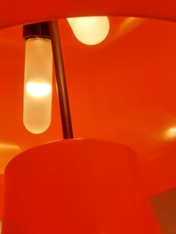 ein paar dalu leuchten in orange - das leuchtende pendant zu verner pantons stühlen