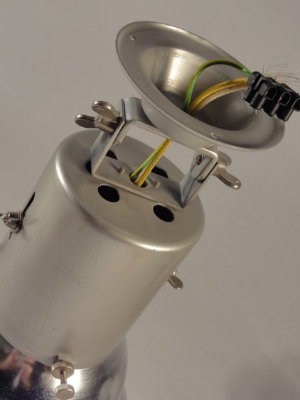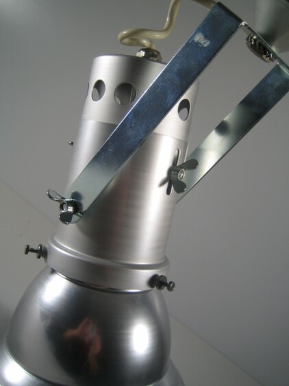 origniale aluminium-schrägspots aus der alumag 80erjahre neuauflage von licht+raum, das grösste modell mit 52 cm maximaler länge. schirm abgeschrägt