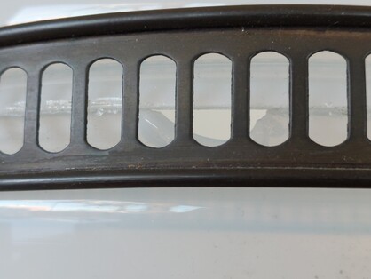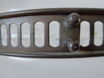 ... aber wenn die bruchstelle hinter die schraubverbindung geschoben wird, ist sie fast nicht mehr sichtbar. und wenn die beiden löcher im halteband links und rechts der schraubverbindung von innen zugedeckt würden, wäre die bruchstelle gar nicht mehr sichtbar...