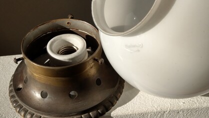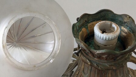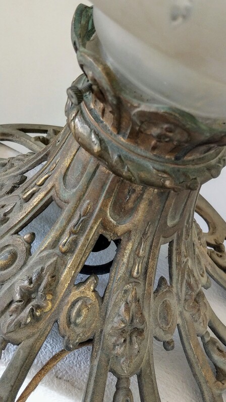 an ornamentierter messingmontage, mit originaler e27-fassung