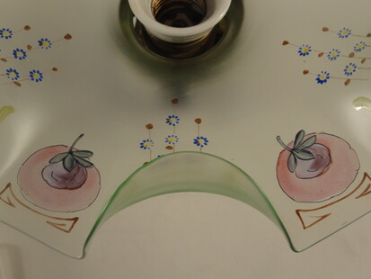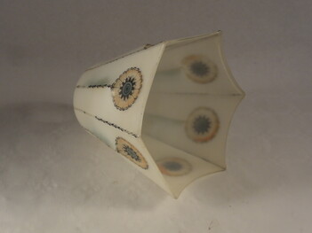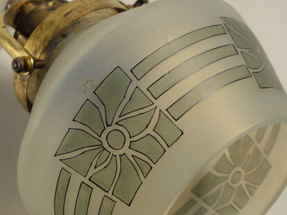 porzellanmontage mit messingfassung. mit geometrischem muster bemaltes mattglas
