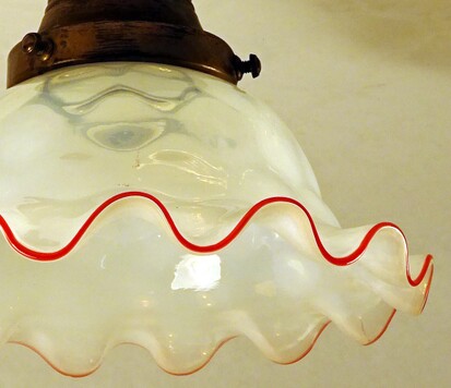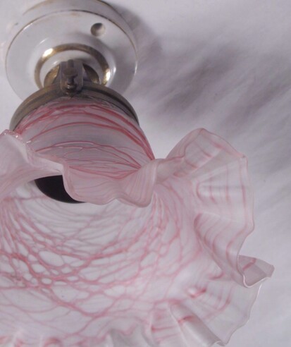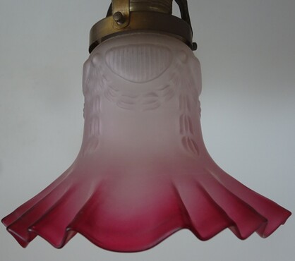 jugendstil deckenleuchte blumiges mattglas mit roten fadeneinschmelzungen original 1900