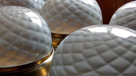 leicht verschieden stark schimmernde glaskugeln an brünierten messinghaltern
