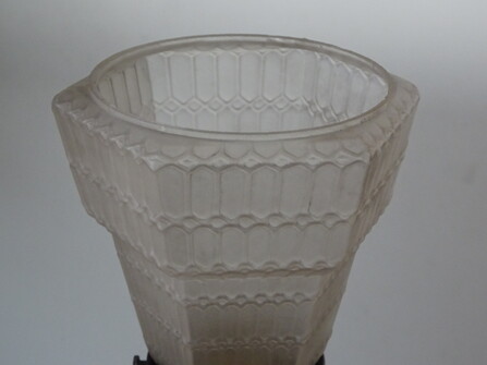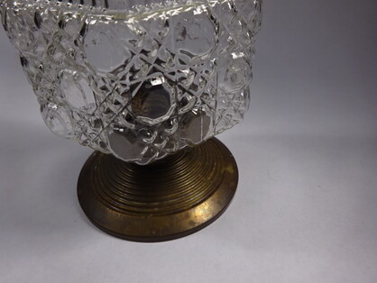 kelchförmiges mattglas mit durchgehendem wabenmuster jugendstil dekor, sechseckig, an sehr dunkel patinierter messingmontierung