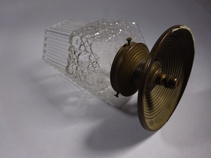 grosse jugendstil glascloche an massivem messingring um 1900, original und aus der zeit. aus einem öffentlichen raum, bahnhof, post oder einem eisenbahnzug, stadtbahn.