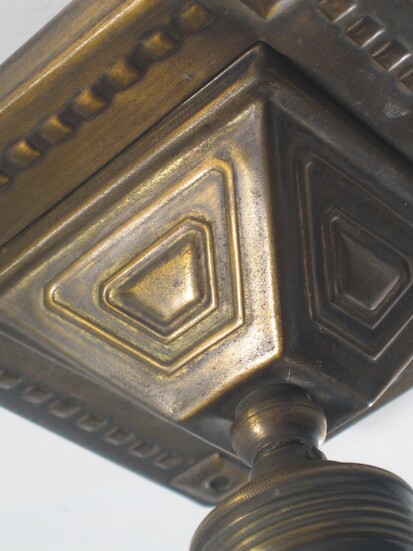 quadratische jugendstil deckenmontage aus stark brüniertem messing um 1900
