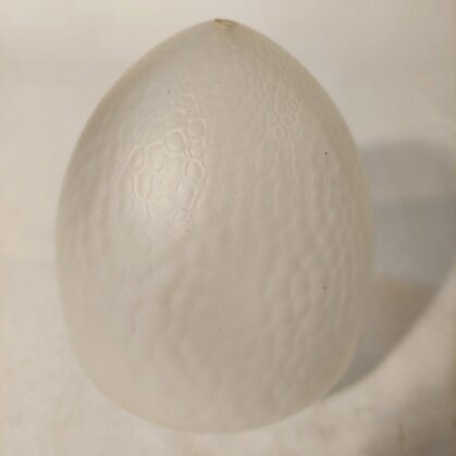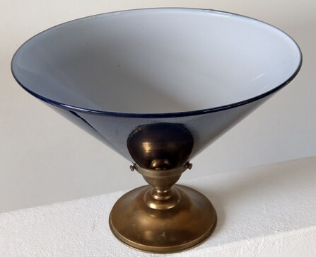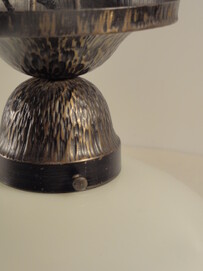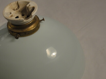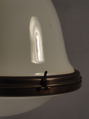 schön patinierte messinghalterung mit opalisierender, eiförmiger glascloche