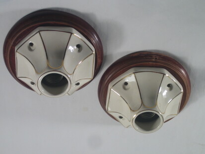 paar klarglas deckenblumen mit schräger porzellanmontage um 1900