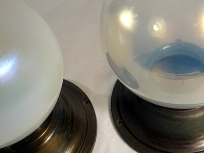 paar opaleszierende jugendstil deckenkugeln um 1900