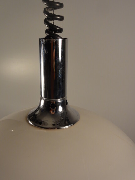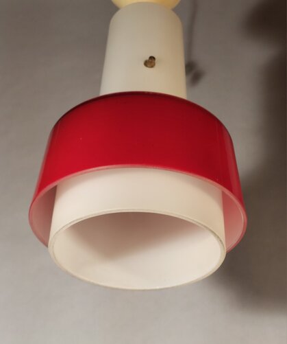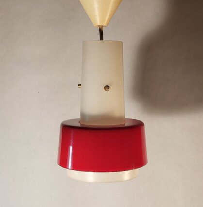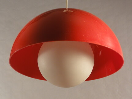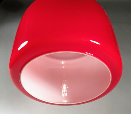 knallrote pilz hängeleuchte aus opalglas, um 1970