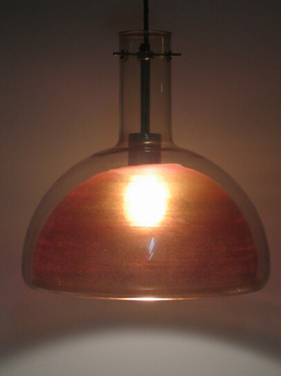 farblich äusserst raffinierte, mundgeblasene glaskolben hängelampe aus der schweiz