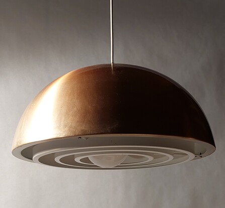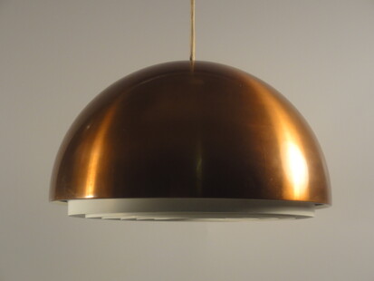 louis poulsen grosse kupfer halbkugel deckenleuchte mit opalglaseinsatz um 1965