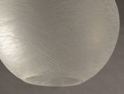 aus einem stück geblasen, innenkugel mattiert und rot gefärbt (bild unten beleuchtet)