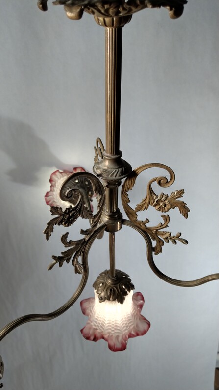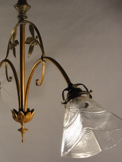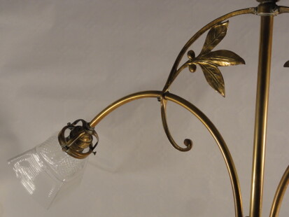 florale zweistrahlige jugendstil deckenleuchte messing poliert um 1910