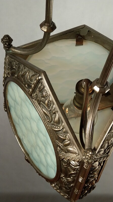 jugendstil deckenleuchte opalglas messingmontierung 1920