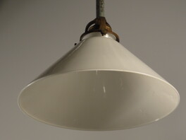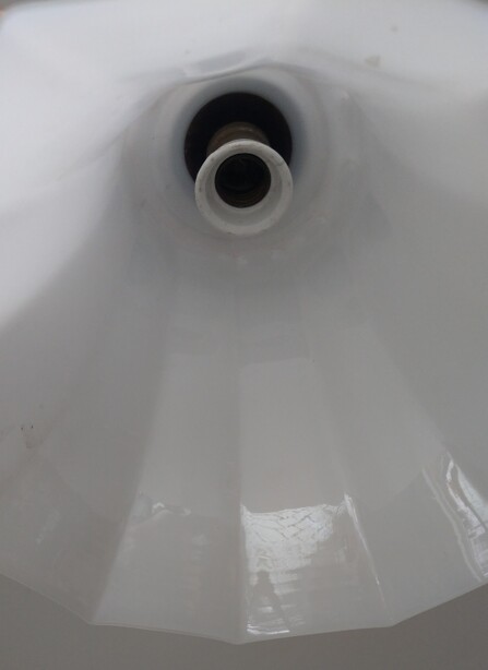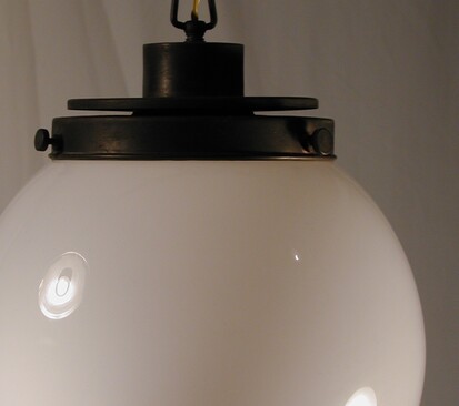 schön gewelltes, kaltgewalztes opalglas in reinweiss an messingaufhängung und länge nach bedarf. auch für montage direkt an die decke oder mit zugvorrichtung umrüstbar...