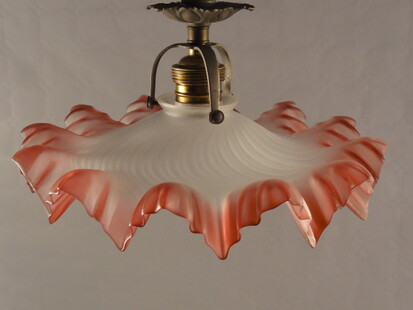 stark gefälteltes jugendstil-deckenglas in rot und weiss um 1900