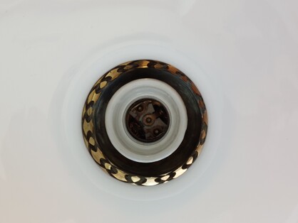 feuervergoldet, originale messingfassung mit porzellanring