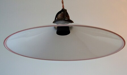 jugendstil tellerleuchte konisch opalglas roter rand 1900