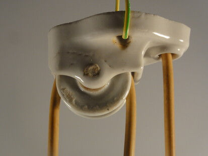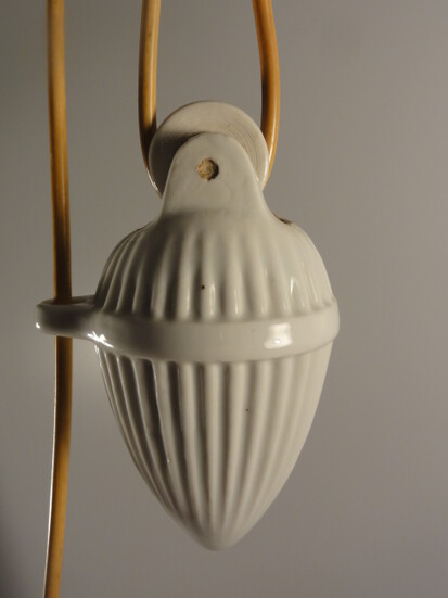 porzellan in gebrochenem weiss mit geriffeltem gewichts-ei. deckenstück ebenfalls aus porzellan