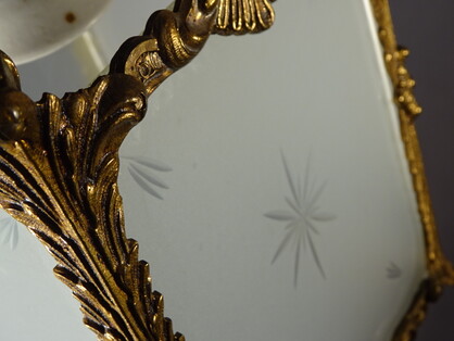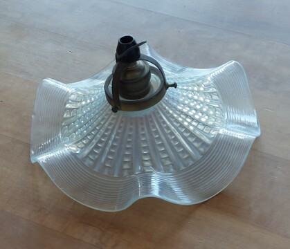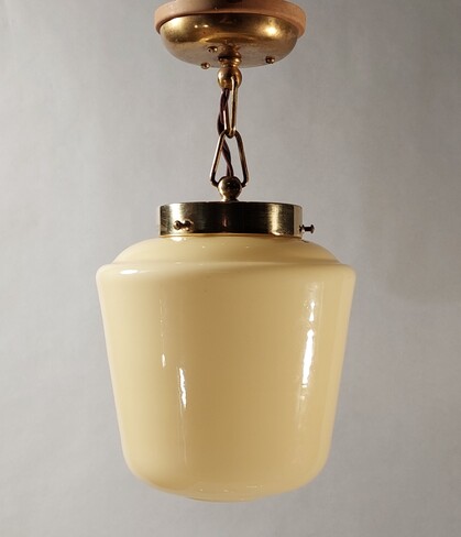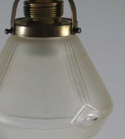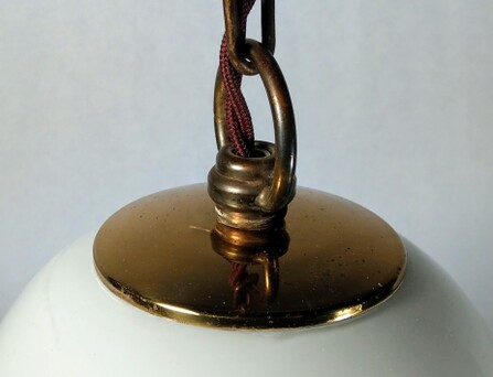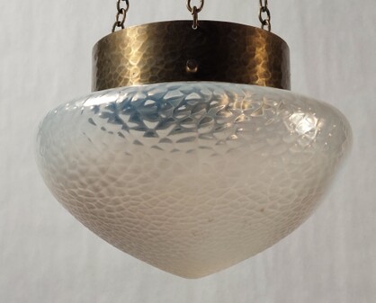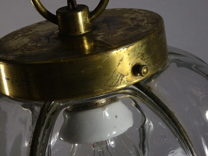 überfangener glasreflektor an messing aufhängung, um 1920