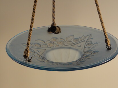 hellblaue pressglasschale hängeleuchte frankreich ca 1925