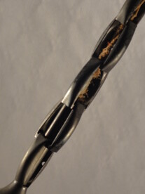kaltgewalztes glas in kegelform an patiniertem messingrohr