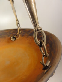 ausserordentlich warme orange-blaue pâte de verre-leuchtenschale, ätzsignatur, an feuervergoldeter bronze-glieder aufhängung