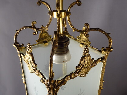 feuervergoldete jugendstil laterne mit geätzten glasscheiben um 1920