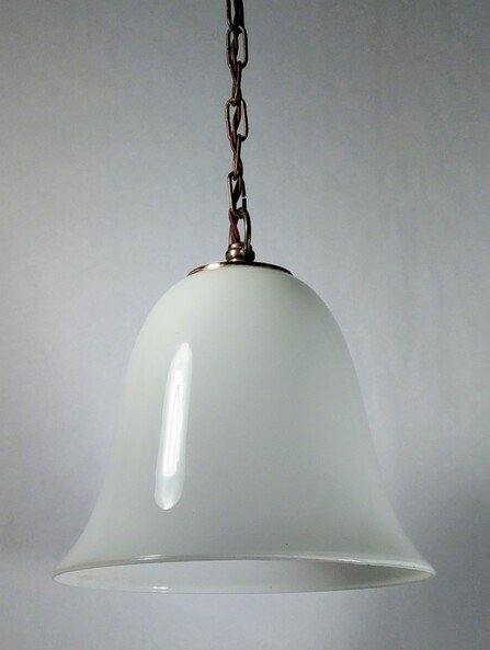 elegant geschweifte, glockenförmige oplaglas hängeleuchte ca 1920, an gliederkette