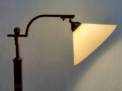 modernistische, schwenkbare stehleuchte mit stufenfuss um 1925