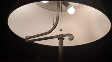 ausgesprochen grosser und formvollendeter deckenfluter vernickelt, 2 lampenfassungen bajonett b22