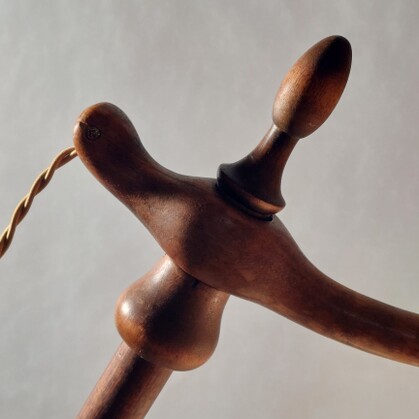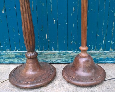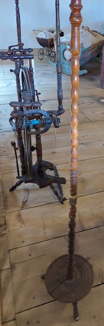 gedrechselte biedermeier-stehleuchte aus altem spinnrocken