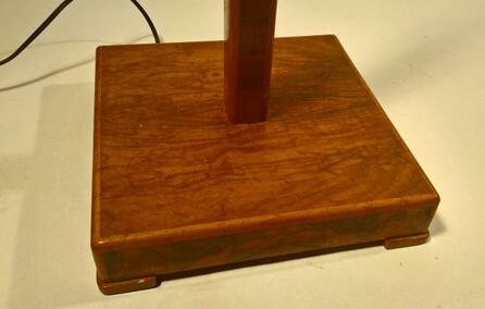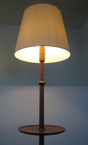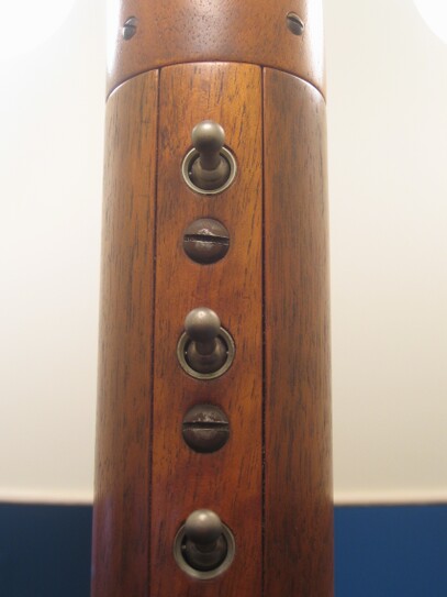 ein zweites, relativ ähnliches modell, aber mit dickerem holzschaft, sich gegen oben verjüngend. insgesamt 3 fassungen, davon 1 als indirektes licht im reflektor