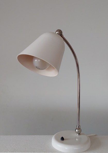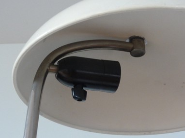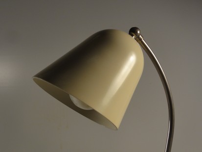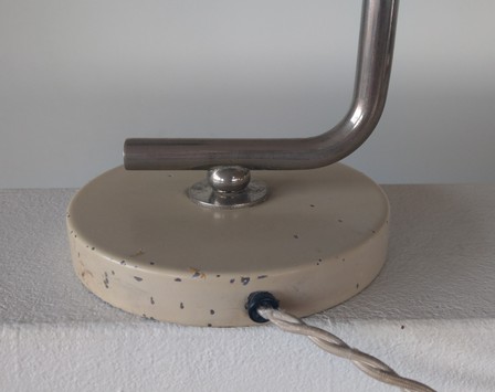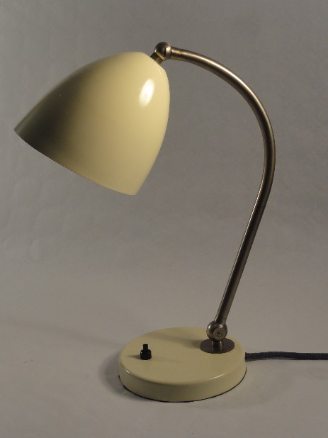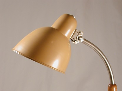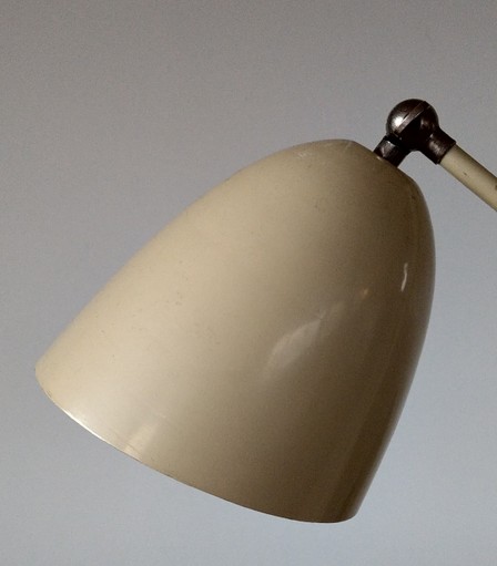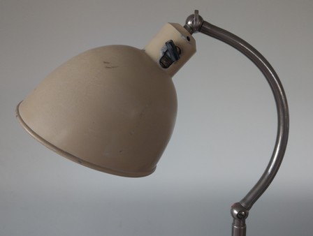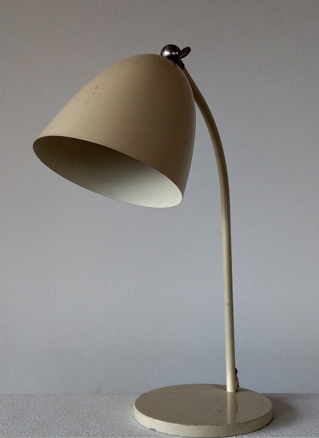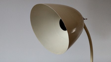 variante der "schweizer bauhausleuchte", beige, modell mit versetztem hals und nicht ausdrehbarem schirm
