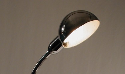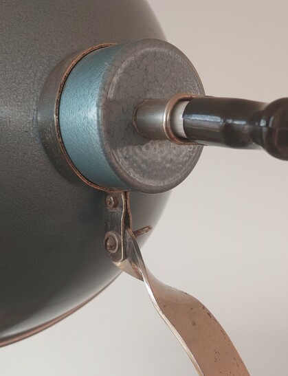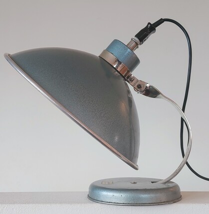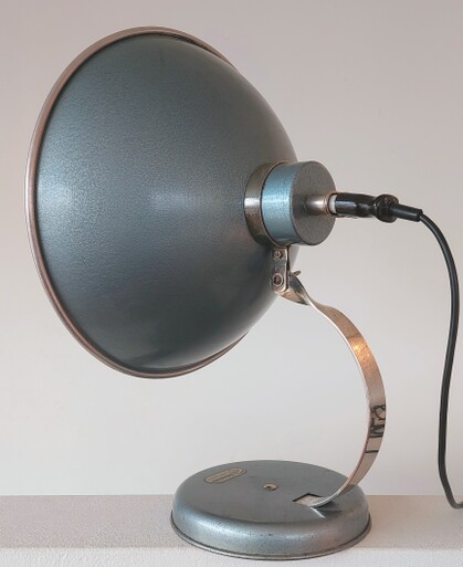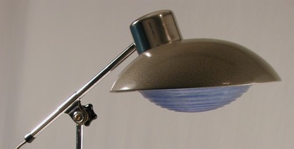 marke "problem" - ist hoffentlich nicht programm... in schönem blau hammerschlag, reflektor innen aluminium poliert, an gedrehtem chromhals kippbar.