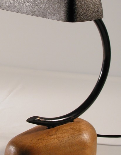 ausgefallene 40erjahre tütenleuchte mit holzfuss und schwanenhals