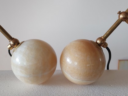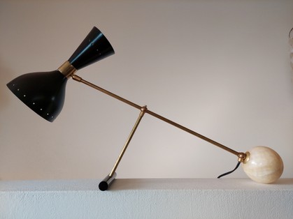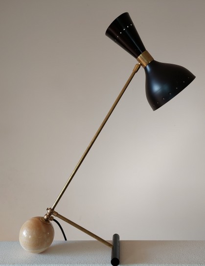 doppel-arredoluce tischleuchten mit marmorkugel 1950