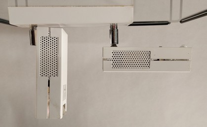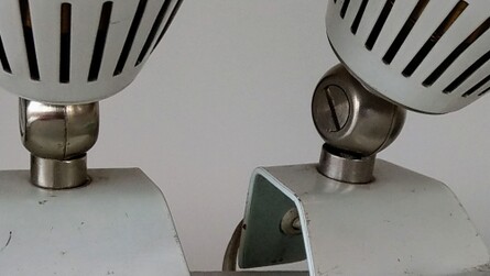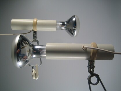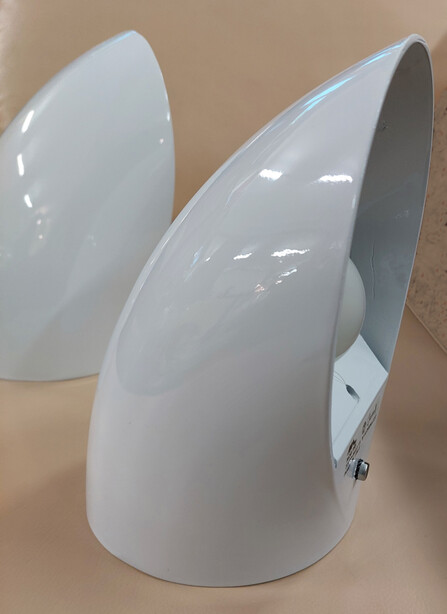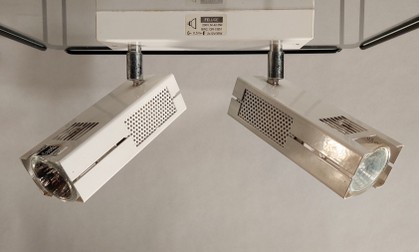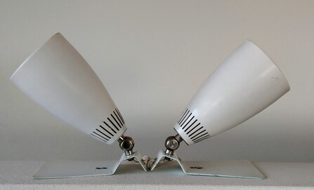 paar weisse spotleuchten SLZ schweiz um 1960