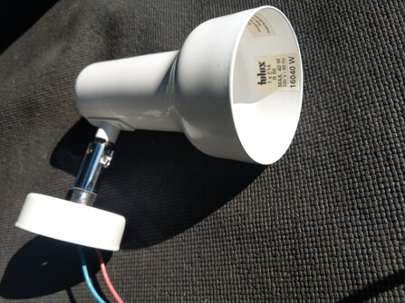 ca 45 grad neigung zur wand (nicht variierbar), gerippter lamellenreflektor um fast 360 grad drehbar. für e27 lange halogen- oder led birnen