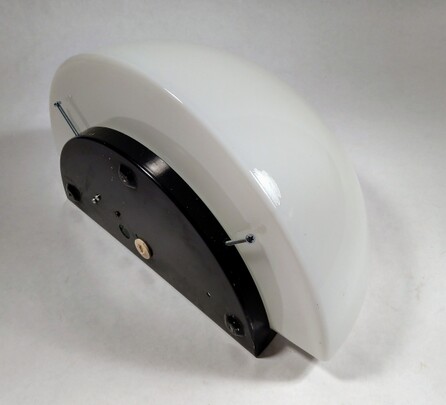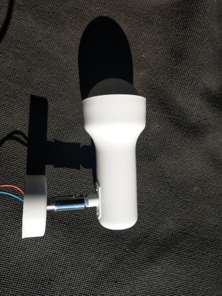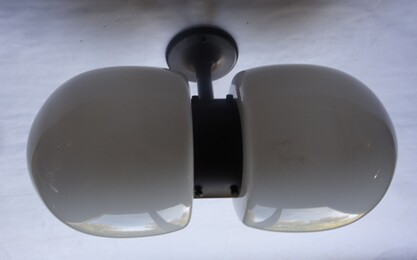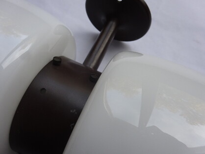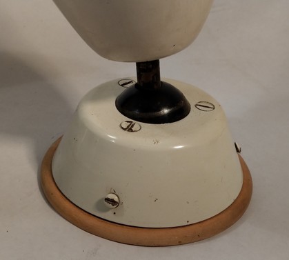 weisse metallkörper an drehkugel für wand- oder deckenmontage, eher 50erjahre