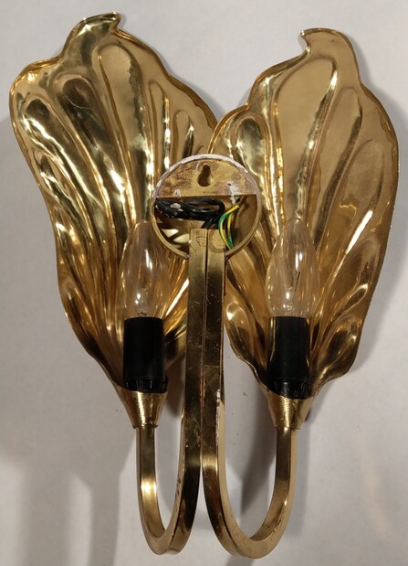 5 stück doppel-wandleuchten messing glanz in form von blättern von tommaso barbi und carlo giordi für bottega gadda und g&g studio e designo 1970, je 2 e13-fassungen