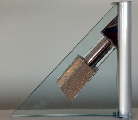 ein äusserst sinnliches stück metall - als applique, auf dem boden, im regal - mit kompletter aufhängung in alu-druckguss