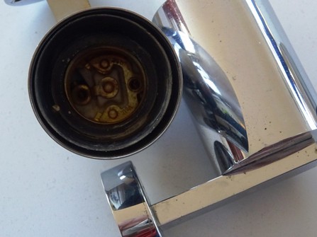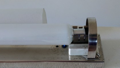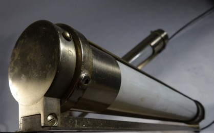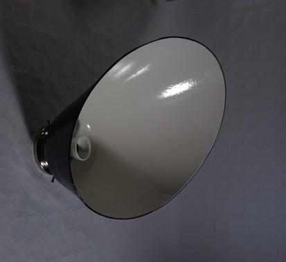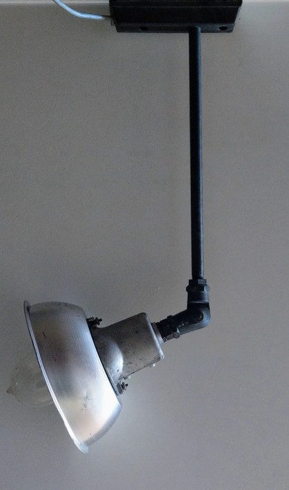 vernickeltes montagegestänge mit schwarzem alureflektor, drehschalter