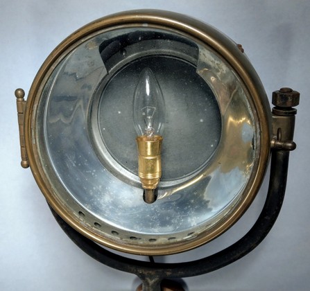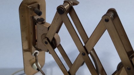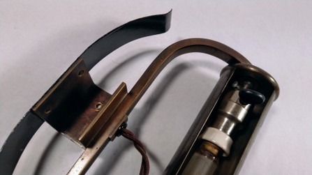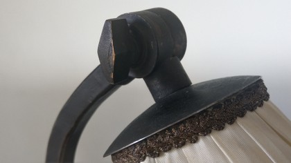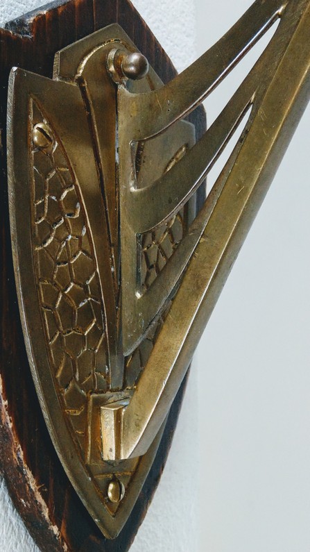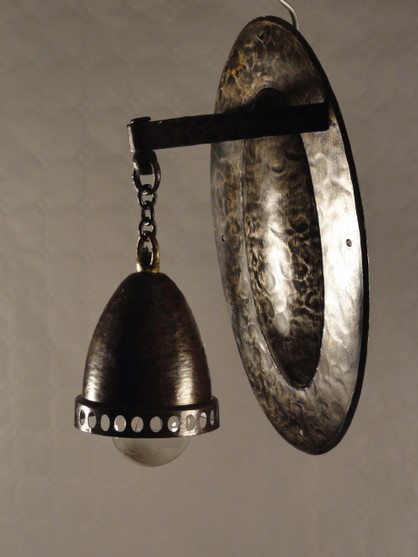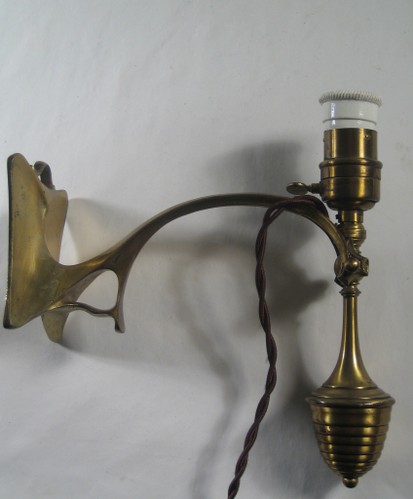 gehämmertes messing, vermutlich wiener schule um 1900, minimalistische, leicht patinierte messing-applique mit gewölbtem rückenteil zur besseren lichtverteilung
