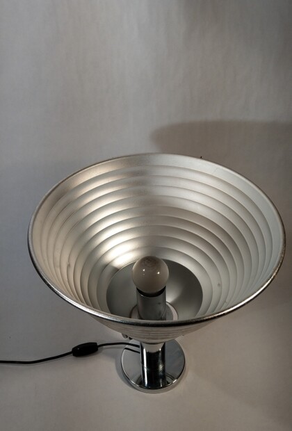 bodenleuchte oder deckenfluter, breiter aluminiumreflektor auf chromstand, 1960
