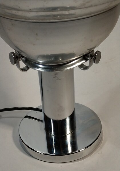 geschweifte chromband tischleuchte mit pilzglas 1960