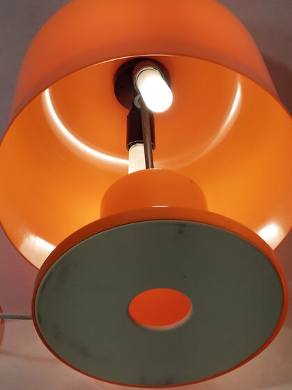 ein paar dalu leuchten in orange - das leuchtende pendant zu verner pantons stühlen