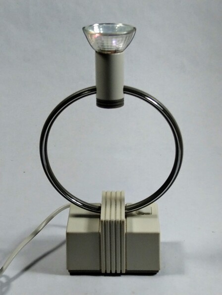 aus derselbe nserie wie ettore sottsass halo click - eine postmoderne multifunktionsleuchte von philips. der strahler lässt sich rundherum und in alle richtungen drehen. birnen gibts auch als led