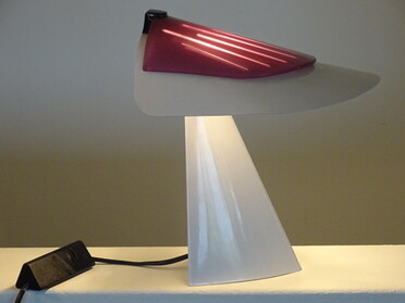 pilzförmige, grosse kunststoff tischleuchte ohne bezeichnung. relativ leicht mit 2 e27-birnenfassungen